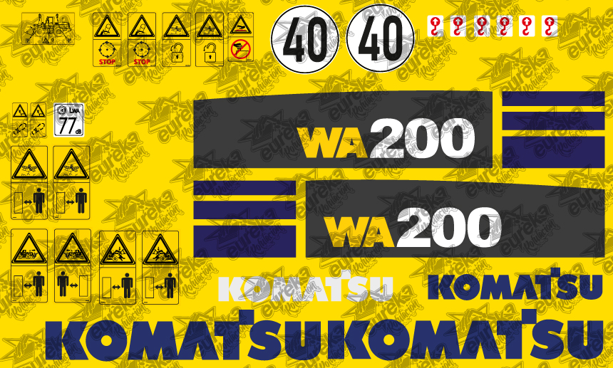 Juego de pegatinas compatibles pala cargadora Komatsu WA200