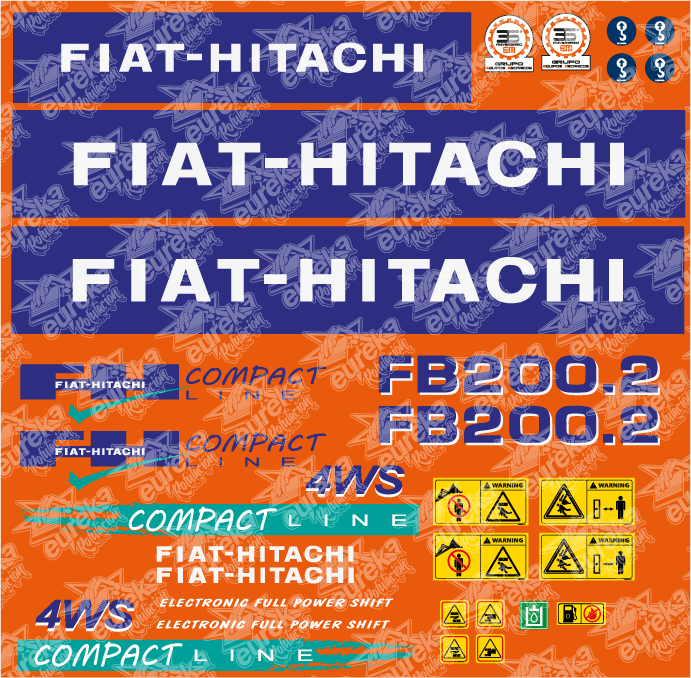 Juego de pegatinas compatible para Fiat Hitachi FB200.2